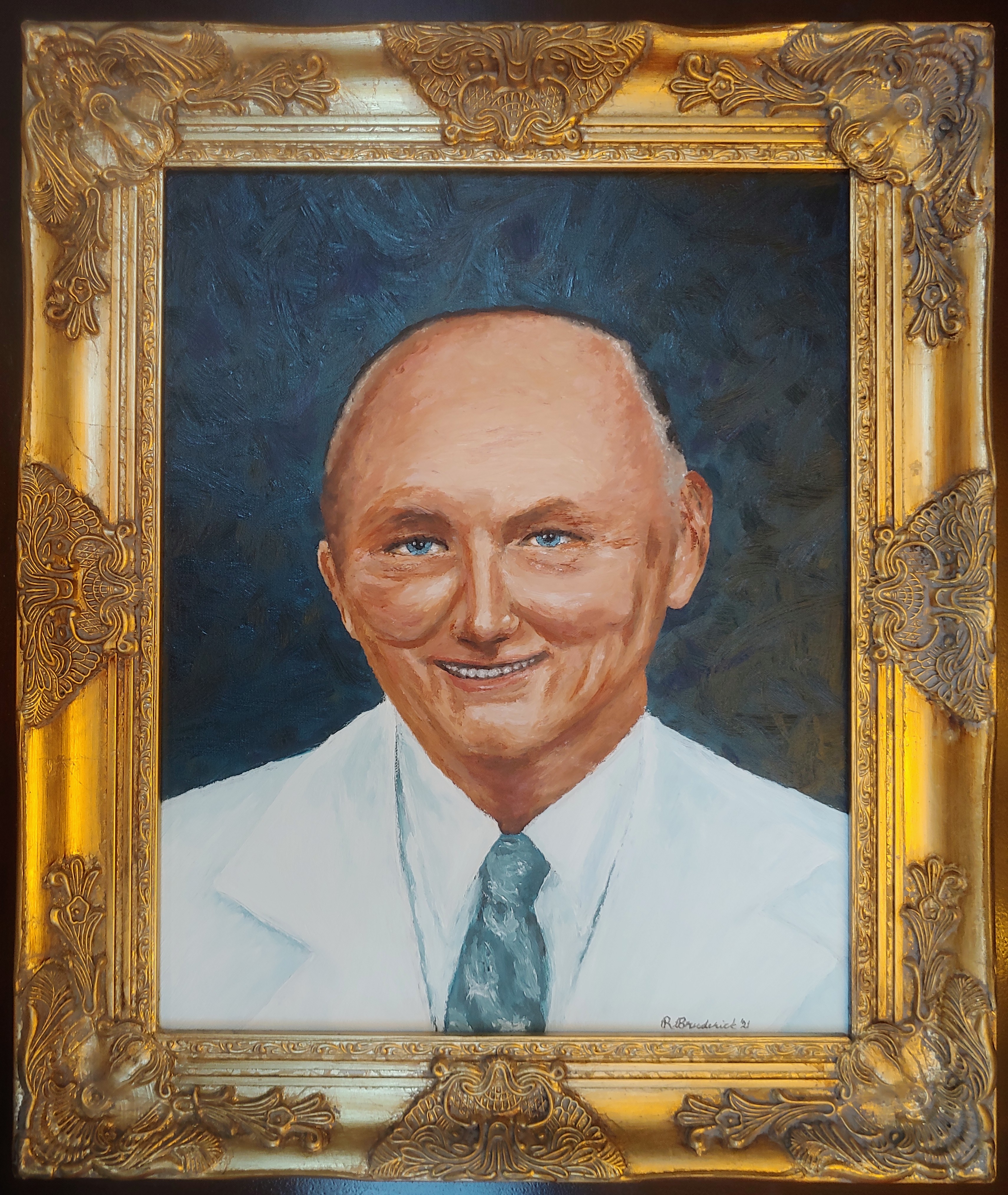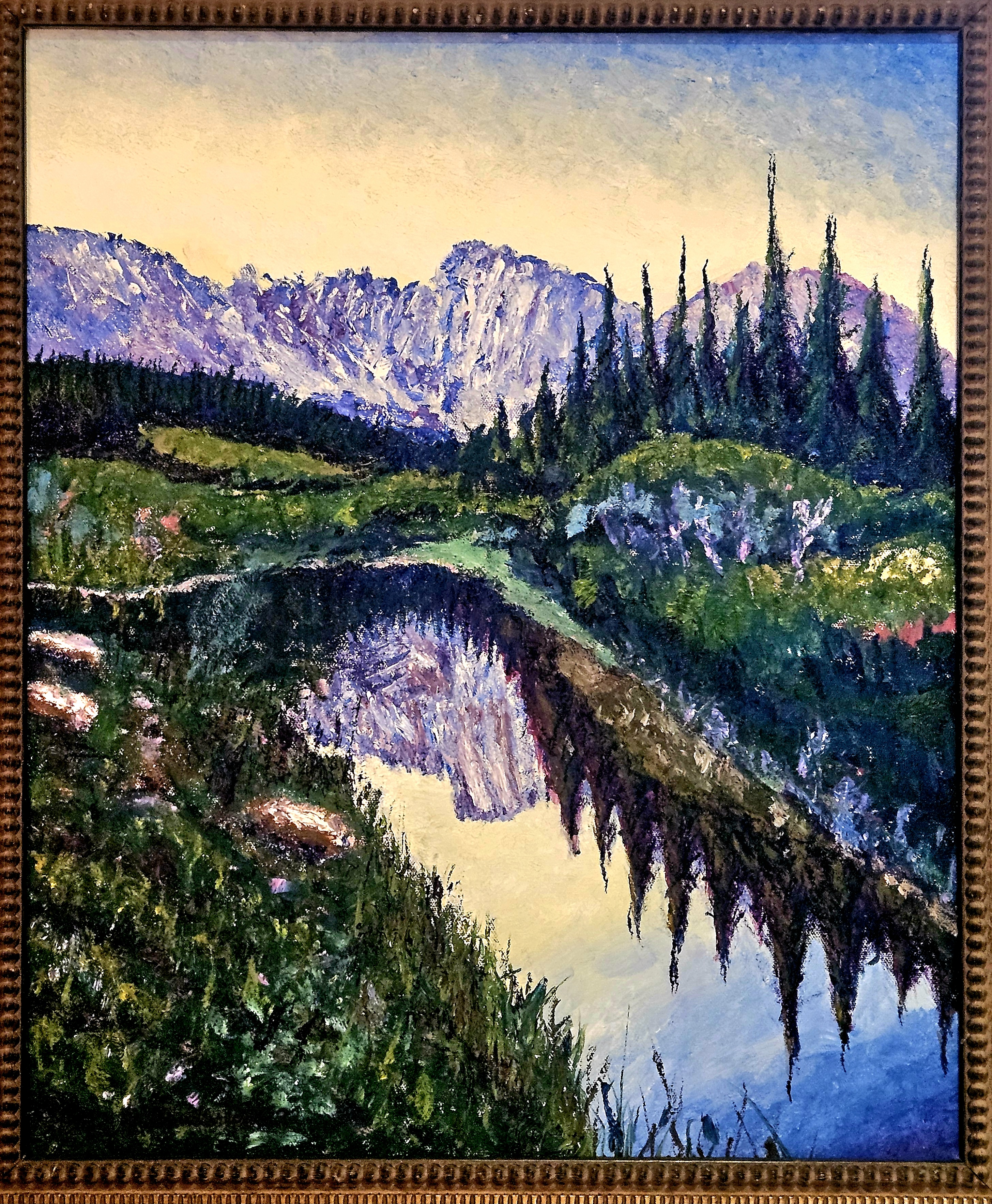 Rick works in oil, watercolor, pastel, and stained glass, from reference photos or live models.
